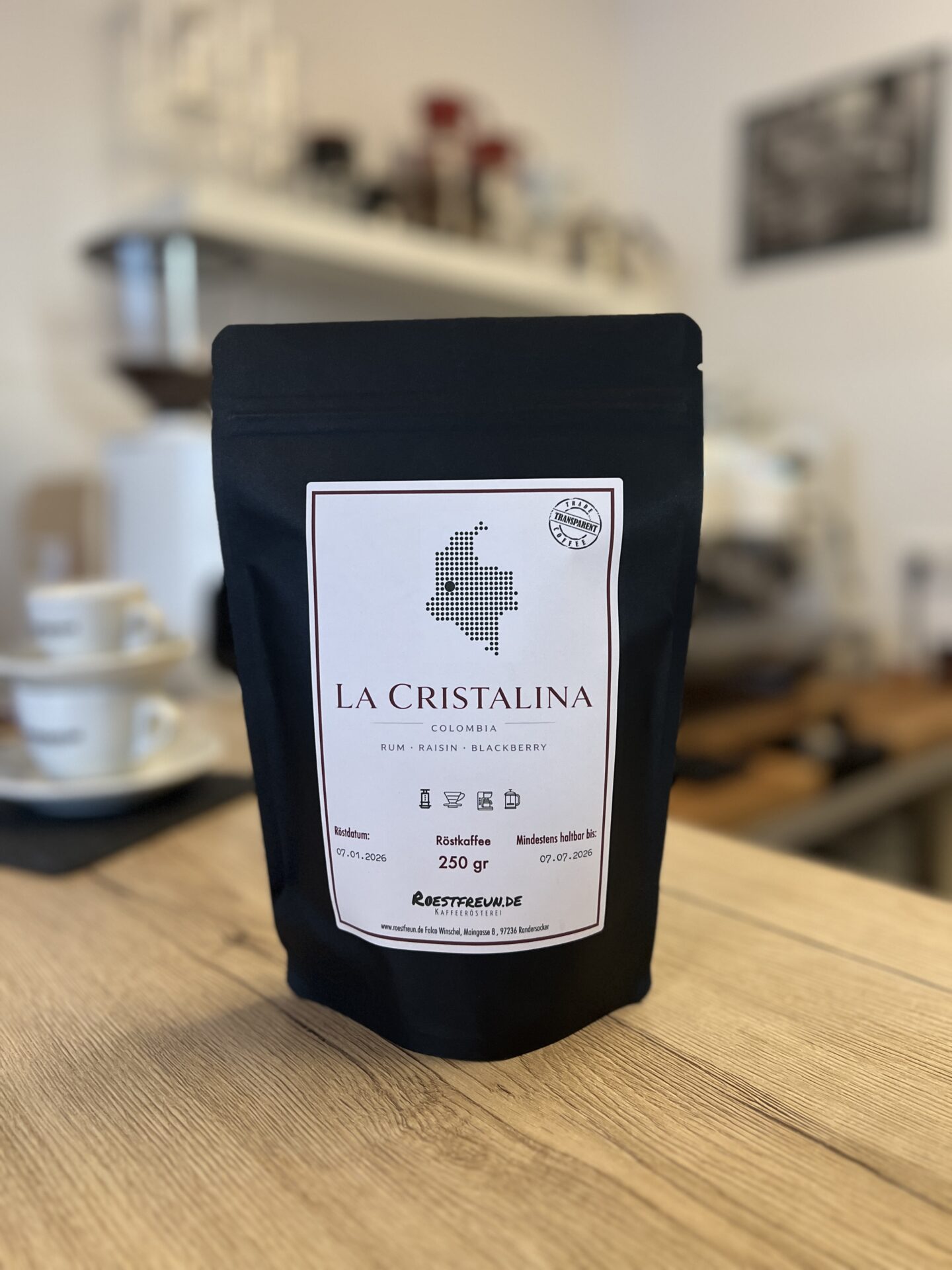Auf knapp 1.400 Metern wächst dieser Arabica der Varietät Castillo. Wir hatten diesen Kaffee bereits als anaerob fermentierte Aufbereitung, hier handelt es sich nun um einen auf den Dächern der Farmen sonnengetrockneten Kaffee. Importiert wird er durch Maria und Andreas von Col Spirit, die mit großer Leidenschaft hochwertige Kaffees auf den Farmen Ihrer Familie herstellen. Es handelt sich hierbei um die Filterröstung des Kaffees, den wir schon seit langem als Espresso im Sortiment führen. Der Kaffee hat auch in der Filterröstung eine betörende Trauben-Aromatik, bringt Rum, Rosine und Brombeere in die Nase und verhält sich in der Tasse als sauber und fruchtig mit einem Hauch von Taninen im Abgang. Wer mag, kann ich auch als Espresso zubereiten, dann mit höherer Dosierung und feinerem Mahlgrad bei gleichzeitig längerer Bezugsdauer und höherer Temperatur im Vergleich zum klassischen Espresso.