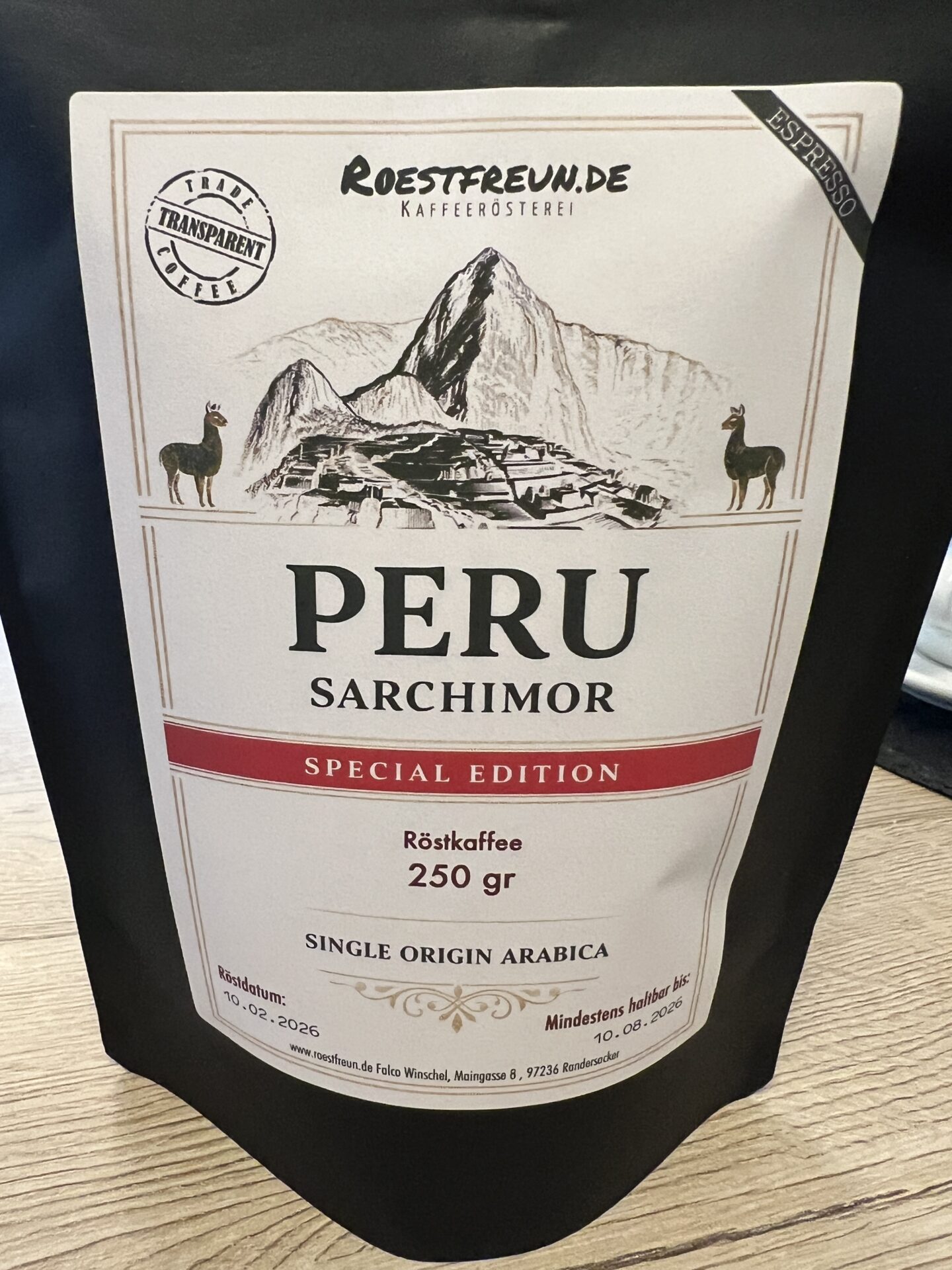 Mit seinem mittleren Röstprofil balanciert dieser Arabica aus Peru an der Grenze zwischen Frucht und Schokolade. Ein leichter Körper, eine nussfarbene, leicht getigerte, aber elastische Crema bei viel Cremigkeit und wenig Säure brillieren in der Tasse. Aromatisch in Richtung Krokant und Rohrzucker unterwegs, eine Note Roter Apfel dazu. So entsteht ein äußerst komplexer, aber sehr ausgewogener Espresso. Er eignet sich perfekt für Latte Art und es scheint so, als wäre er für einen Flat White gemacht.